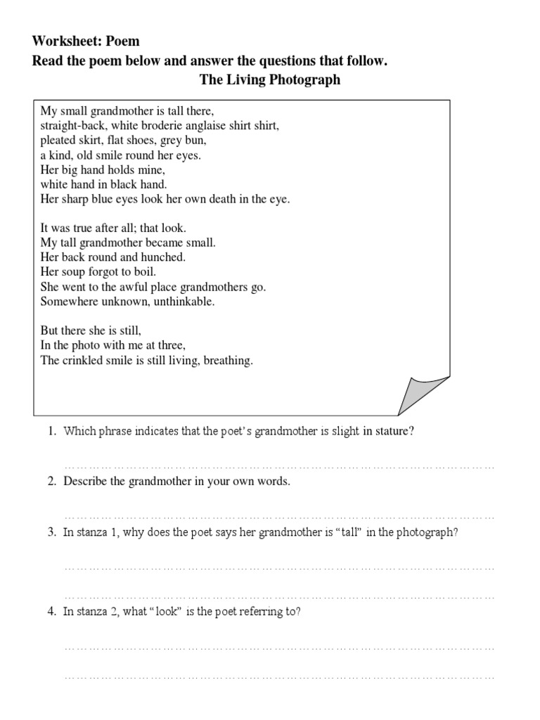 Poem The Living Photograph Exercise Pdf